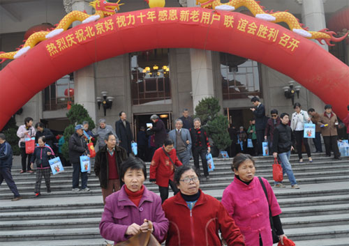 湖北的用戶(hù)們早早的便聽(tīng)說(shuō)了這次活動(dòng),紛紛趕來(lái)武昌參加這次具有特殊意義的十年感恩活動(dòng)。當天,來(lái)自武漢、武昌、漢口三個(gè)地區的近1300名新老用戶(hù)與好視力人一起度過(guò)了難忘的一天。與好視力已有多年淵源的他們,如同赴老友之約一般,帶著(zhù)對好視力的無(wú)限祝福和感謝,興高采烈的來(lái)到活動(dòng)現場(chǎng)。通過(guò)現場(chǎng)精彩的節目和活動(dòng),一同回顧了好視力眼貼十年來(lái)的輝煌足跡,一起為好視力眼貼的未來(lái)放飛希望和祝福。