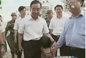 溫總理俯身?yè)肀О参渴ビH人的小女孩