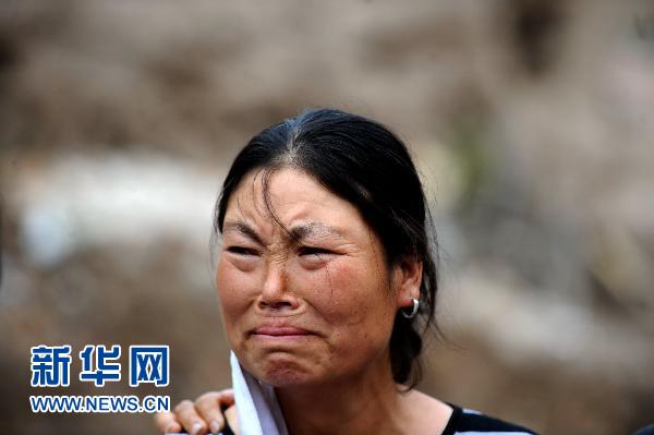 8月12日,尚尖琴在等待妹妹的消息。 8月8日上午,舟曲縣大川鄉農民尚尖琴聽(tīng)到縣城發(fā)生特大泥石流的消息,不顧一切趕到舟曲縣城城關(guān)鎮東街村妹妹的住處,才發(fā)現這里早已被一片泥石流淹埋。妹妹的兩個(gè)孩子正在縣城上小學(xué),當晚與媽媽住在一起,在泥石流災害中也一起沒(méi)有了消息。尚尖琴找來(lái)十多個(gè)親戚到縣城尋找妹妹,可是原來(lái)的房子連房頂都找不到,周?chē)囊磺卸甲兞四。尚尖琴就和那些失去親人的人一起跪在泥石中,配合搜救人員在泥石上挖掘、尋找?墒,泥石流的襲擊使原來(lái)的很多建筑偏移了原來(lái)的方向,一直挖了4天,尚尖琴都沒(méi)有找到她的妹妹和兩個(gè)外甥。在此期間,只要挖出一具遺體,尚尖琴就會(huì )撲上前去辨認,大哭一場(chǎng)。12日下午,救援官兵在東街村一處廢墟中找到一大兩小三具遺體,經(jīng)過(guò)尚尖琴辨認,確認是她的親人。新華社記者 聶建江 攝