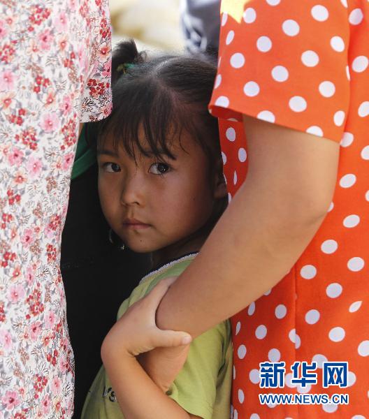 8月19日,在舟曲一個(gè)災民安置點(diǎn),一名小女孩在排隊打飯。