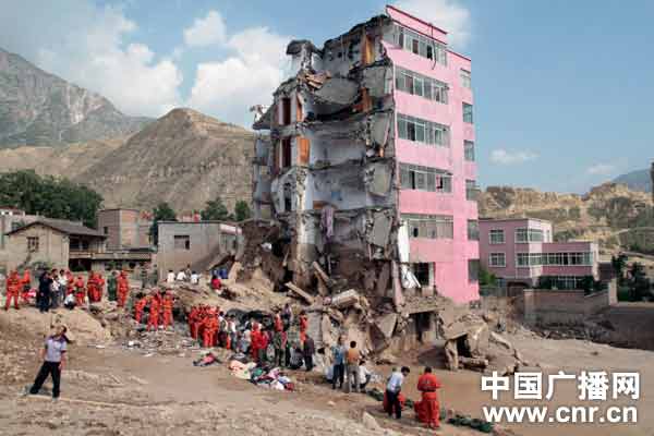 被泥石流沖毀半邊的住宅樓 中廣網(wǎng)攝影記者許大為