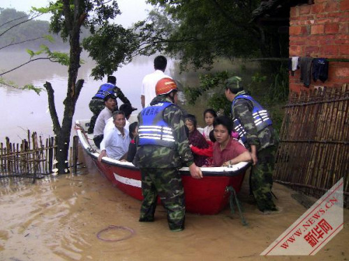 5月7日,廣東英德市人武部民兵緊急轉移群眾。新華社發(fā)(李作描 攝)