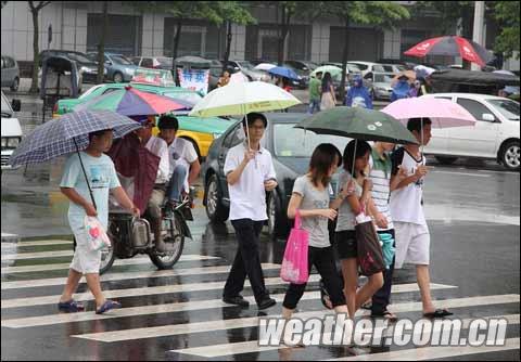 昨天廣東各地出現降雨 行人紛紛打傘避雨(張春生 攝)
