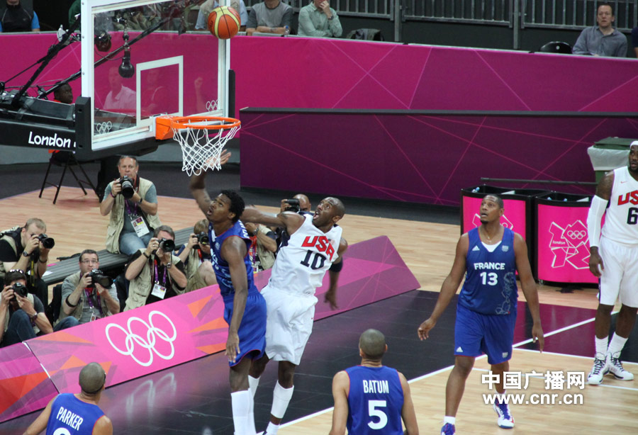 首節比賽,夢(mèng)十不斷用快攻得分。首節還有6分42秒時(shí),美國搶斷之后快速反擊,杜蘭特剛過(guò)罰球線(xiàn)就跳起,滑翔之后單手暴扣得分,連投帶罰拿下3分,美國以11-5領(lǐng)先。法國靠帕克組織進(jìn)攻,一點(diǎn)點(diǎn)將比分扳回。在帕克率領(lǐng)下,法國本節只以21-22落后。
