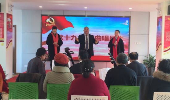 雖然距離赤闌橋“兩應”黨群服務(wù)中心“開(kāi)張”不到一個(gè)月的時(shí)間,但周邊居民參與積極性非常高。走進(jìn)中心二樓一看,益興黃梅戲團正在進(jìn)行“謳歌十九大戲曲唱民生”的表演。一群中老年人唱戲的、敲鼓的、拉二胡的,忙得不亦樂(lè )乎。