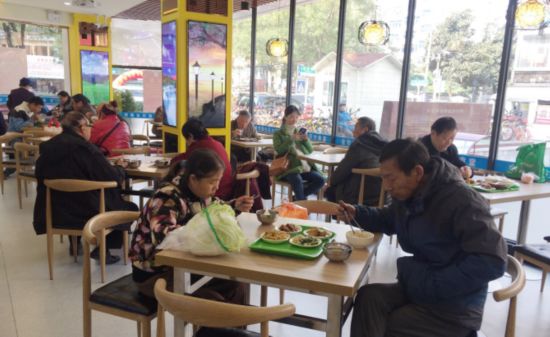 時(shí)值中午,一樓的社區食堂里已經(jīng)有不少人正在用餐。居民朱明香在老年大學(xué)上學(xué),午餐就在這里解決!耙粋(gè)人不想做飯,就可以來(lái)這吃,不僅價(jià)格合理,還吃的放心!