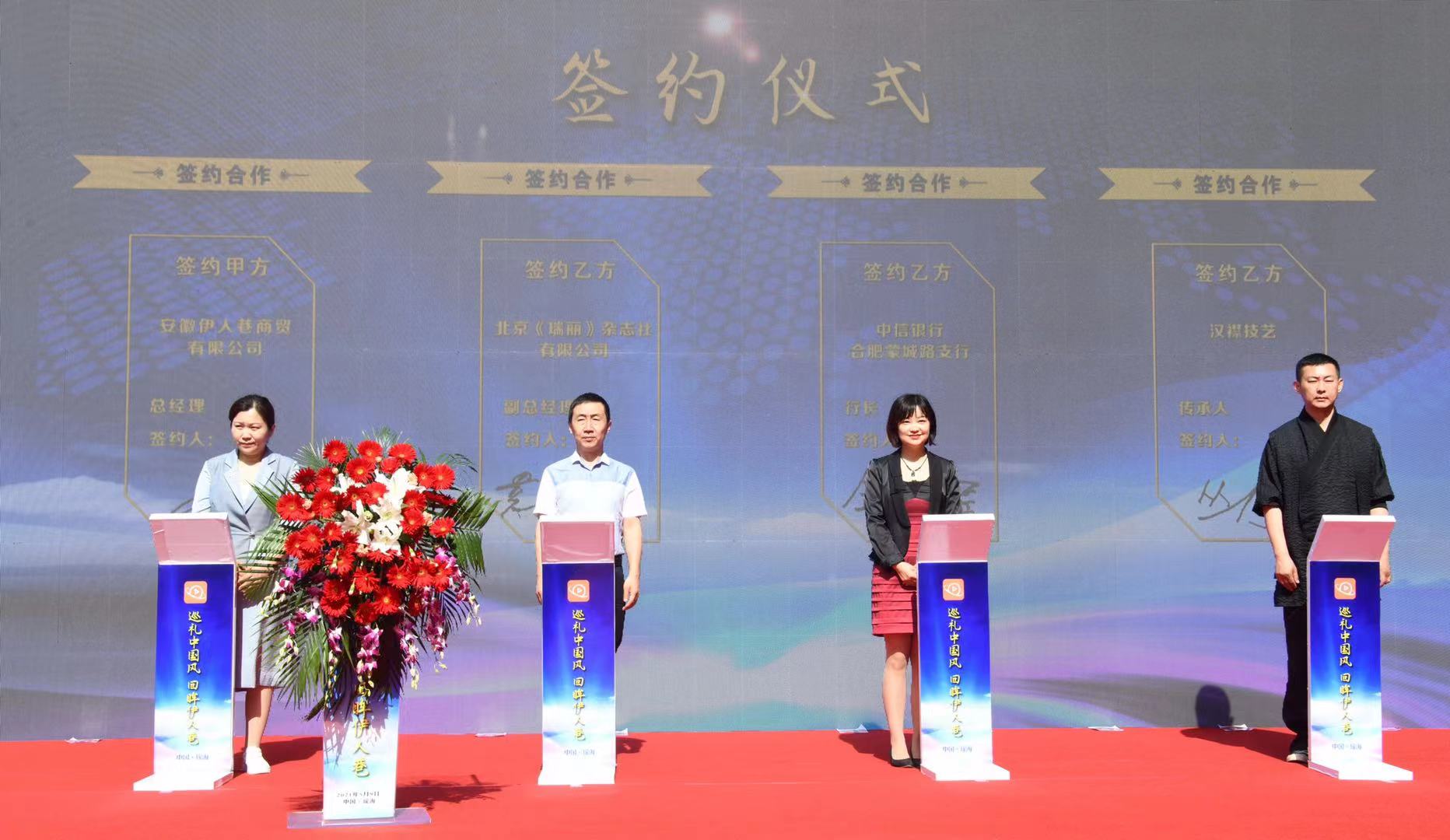 在活動(dòng)現場(chǎng),包括北京《瑞麗》雜志社有限公司、金龍魚(yú)合肥總代、迎駕集團合肥運營(yíng)商、百利食品等14家企業(yè)和非遺文化傳承人與選品中心簽約。