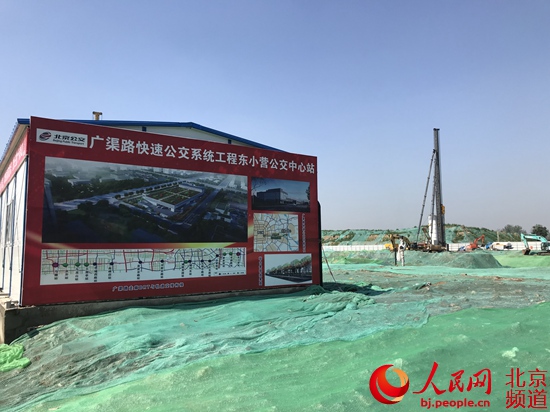 廣渠路快速公交系統工程東小營(yíng)公交中心站施工現場(chǎng)。 人民網(wǎng)池夢(mèng)蕊 攝