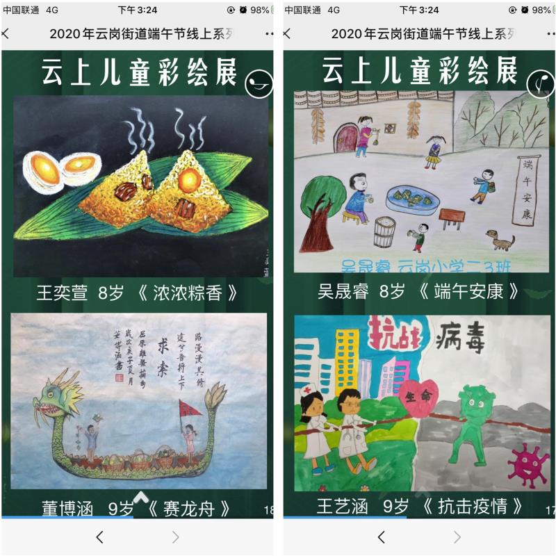 “五月五,過(guò)端午,粽葉青,糯米香……”,又是一年端午節。節日期間,豐臺區云崗街道亳不放松抓好疫情防控工作,切實(shí)落實(shí)干部在崗,群眾過(guò)節要求,確保地區群眾度過(guò)健康平安的端午假期。在持續做好疫情防控各項工作的同時(shí),開(kāi)展“我們的節日·云上端午”主題系列活動(dòng),以“互聯(lián)網(wǎng)+文化”的形式將端午民俗文化從線(xiàn)下搬到線(xiàn)上,并納入新時(shí)代文明實(shí)踐菜單,通過(guò)“賽”端午·知識競賽、“繪”端午·云上兒童彩繪展、“誦”端午·云上詩(shī)歌朗誦會(huì )、“樂(lè )”端午·光影瞬間四個(gè)版塊,以不同角度展現端午節傳統文化特色和云崗街道居民精神風(fēng)貌,為居民量身定做“云上”民俗禮包,向居民廣泛傳送端午節日氛圍。