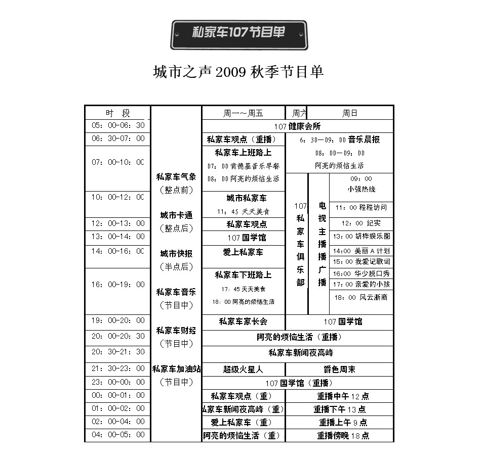 浙江電臺都市之聲2011年節目時(shí)間表