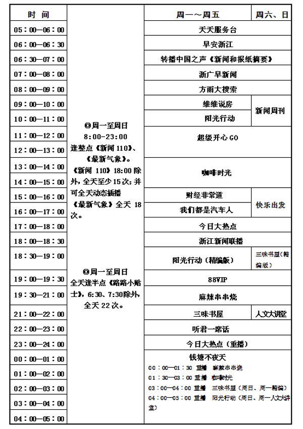 浙江電臺FM104.5頻率2011年節目時(shí)間表