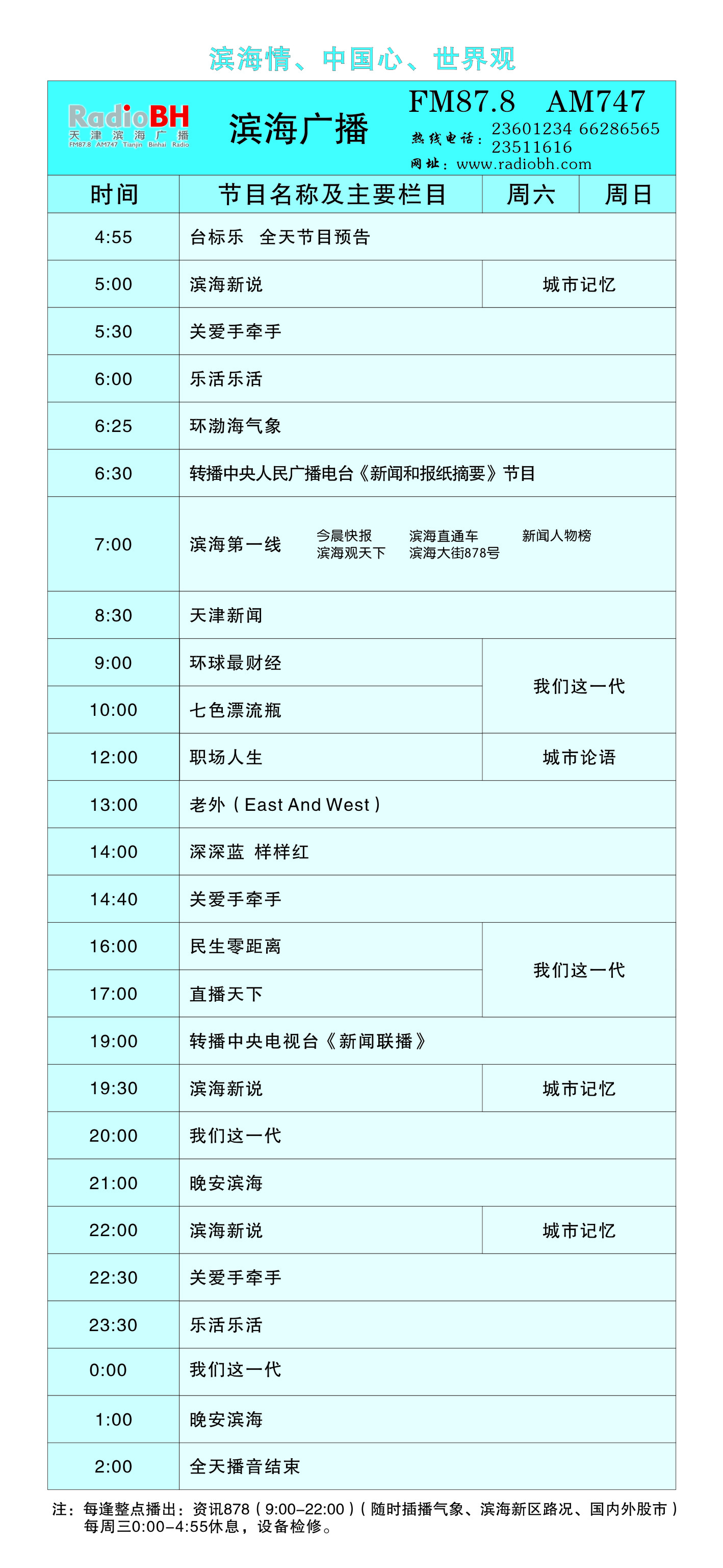 天津電臺濱海廣播2011年節目時(shí)間表