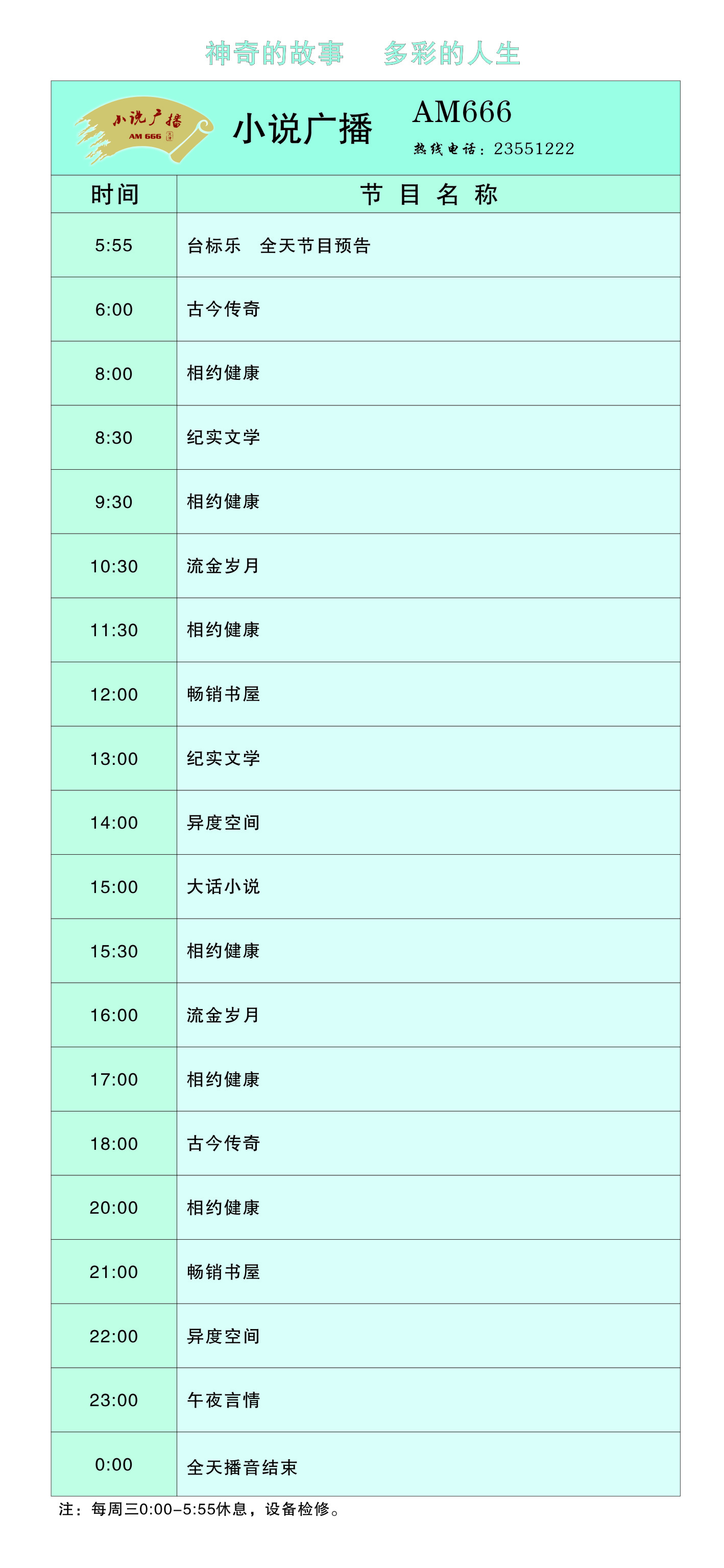 天津電臺小說(shuō)廣播2011年節目時(shí)間表