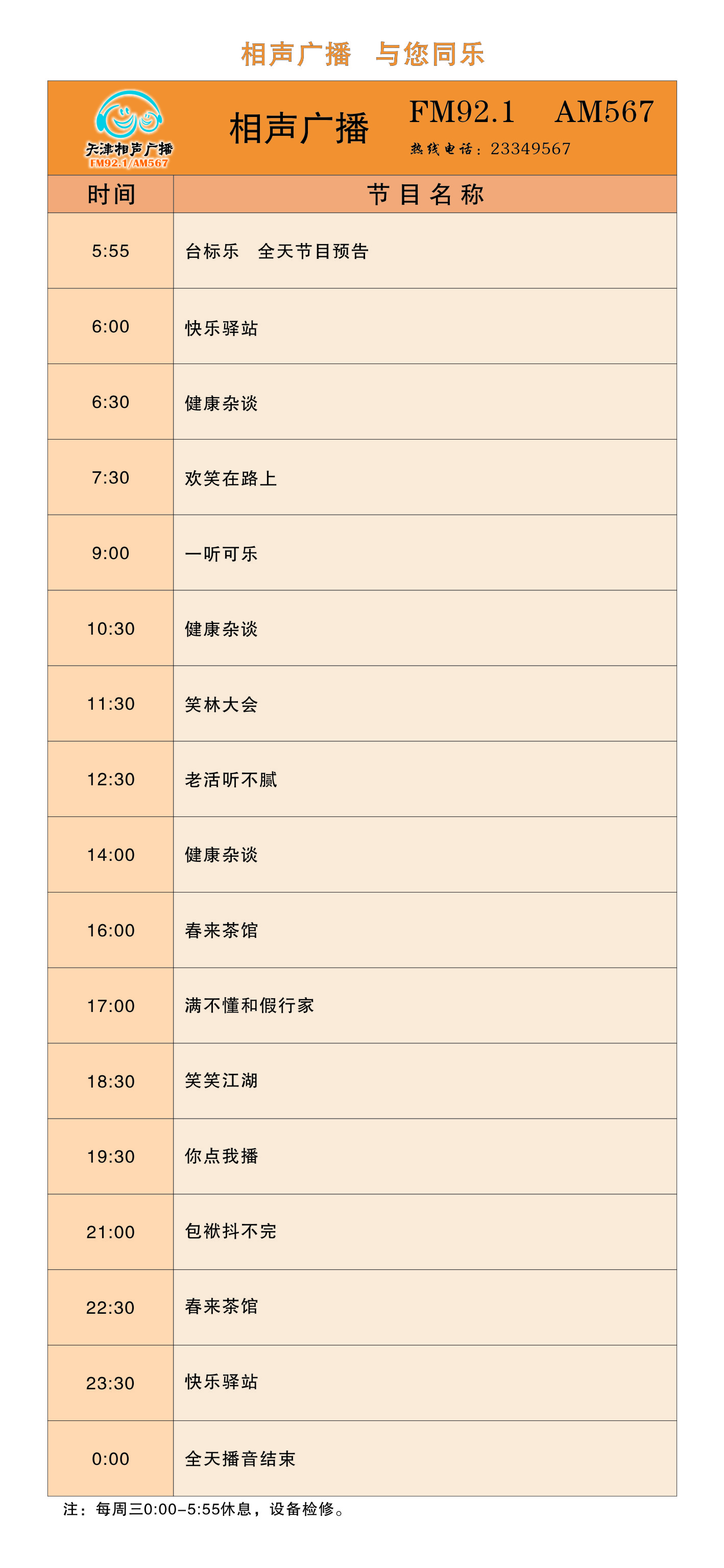 天津電臺相聲廣播2011年節目時(shí)間表