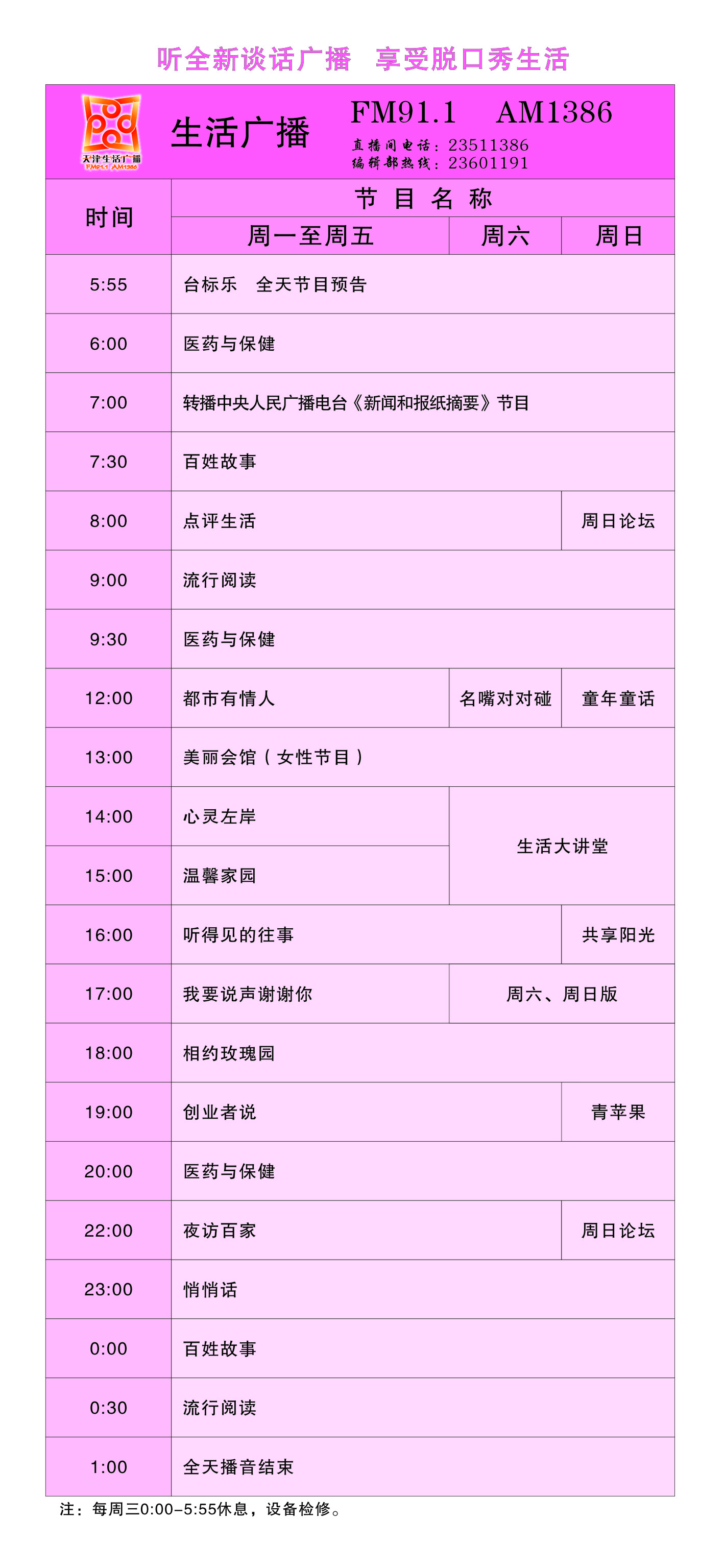 天津電臺生活廣播2011年節目時(shí)間表