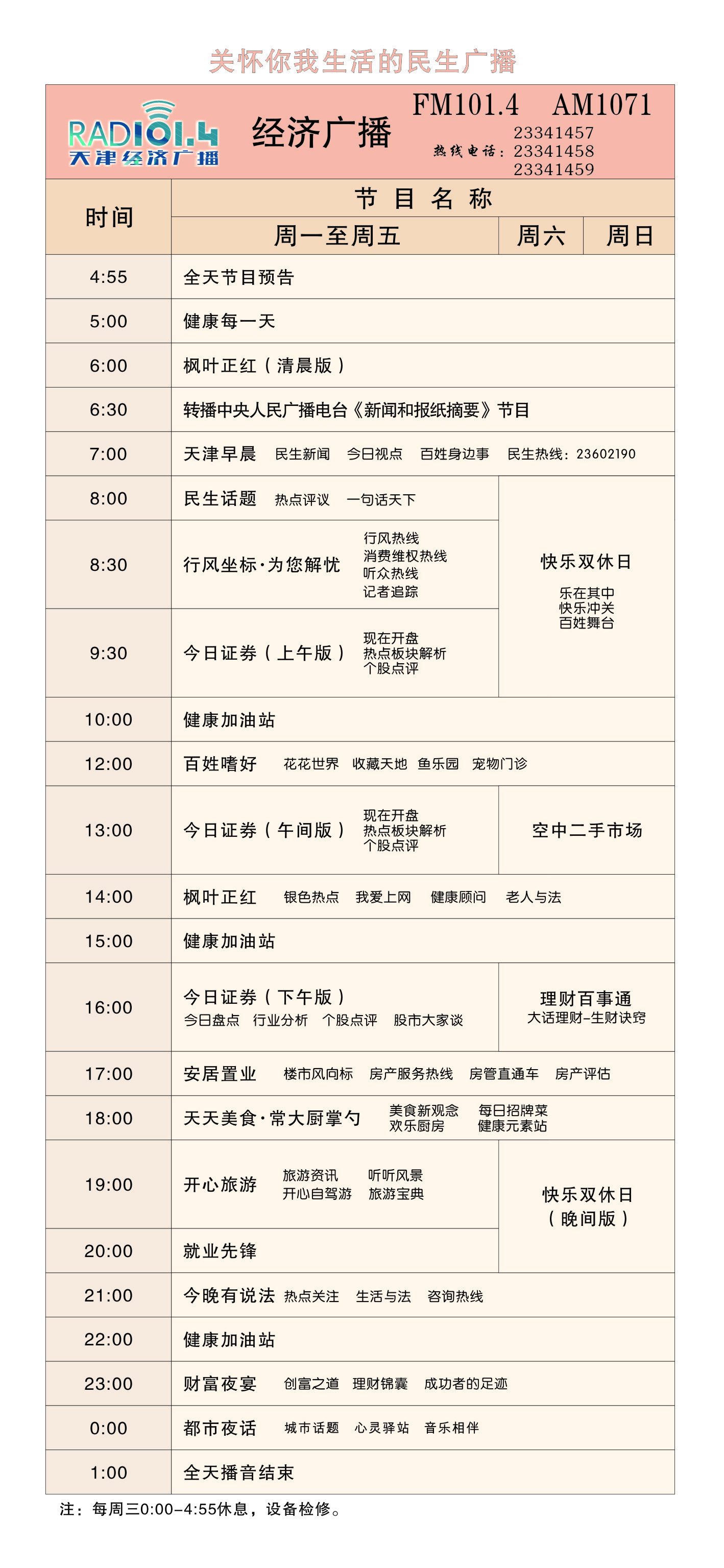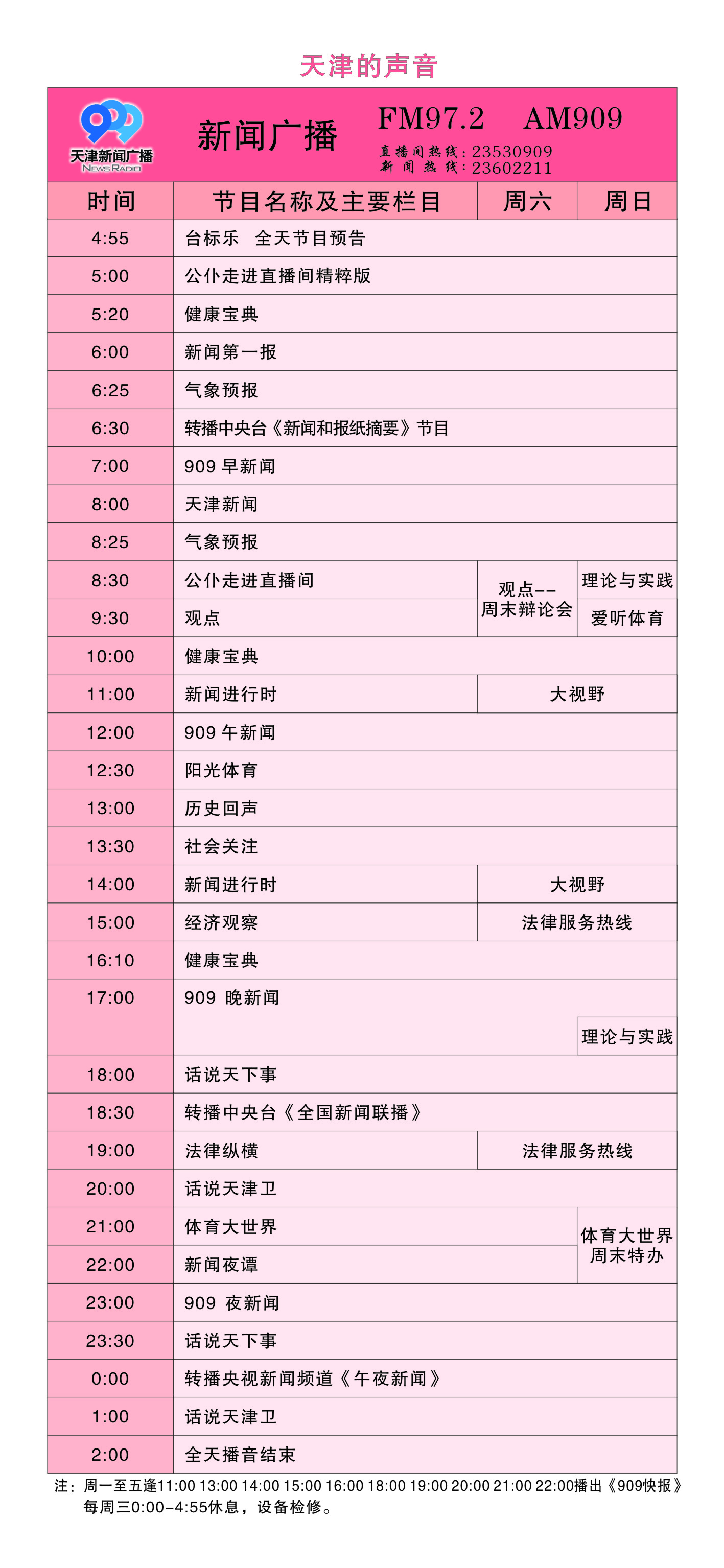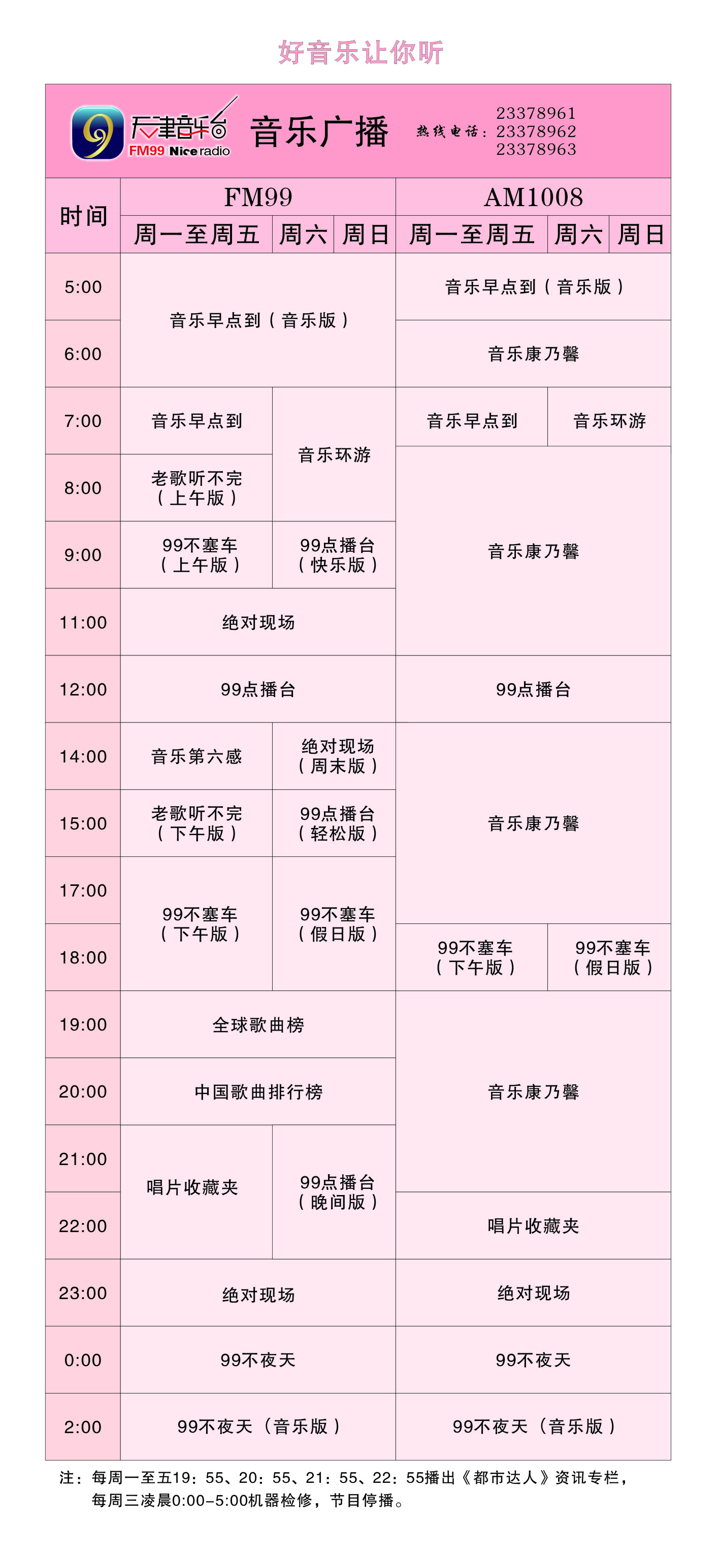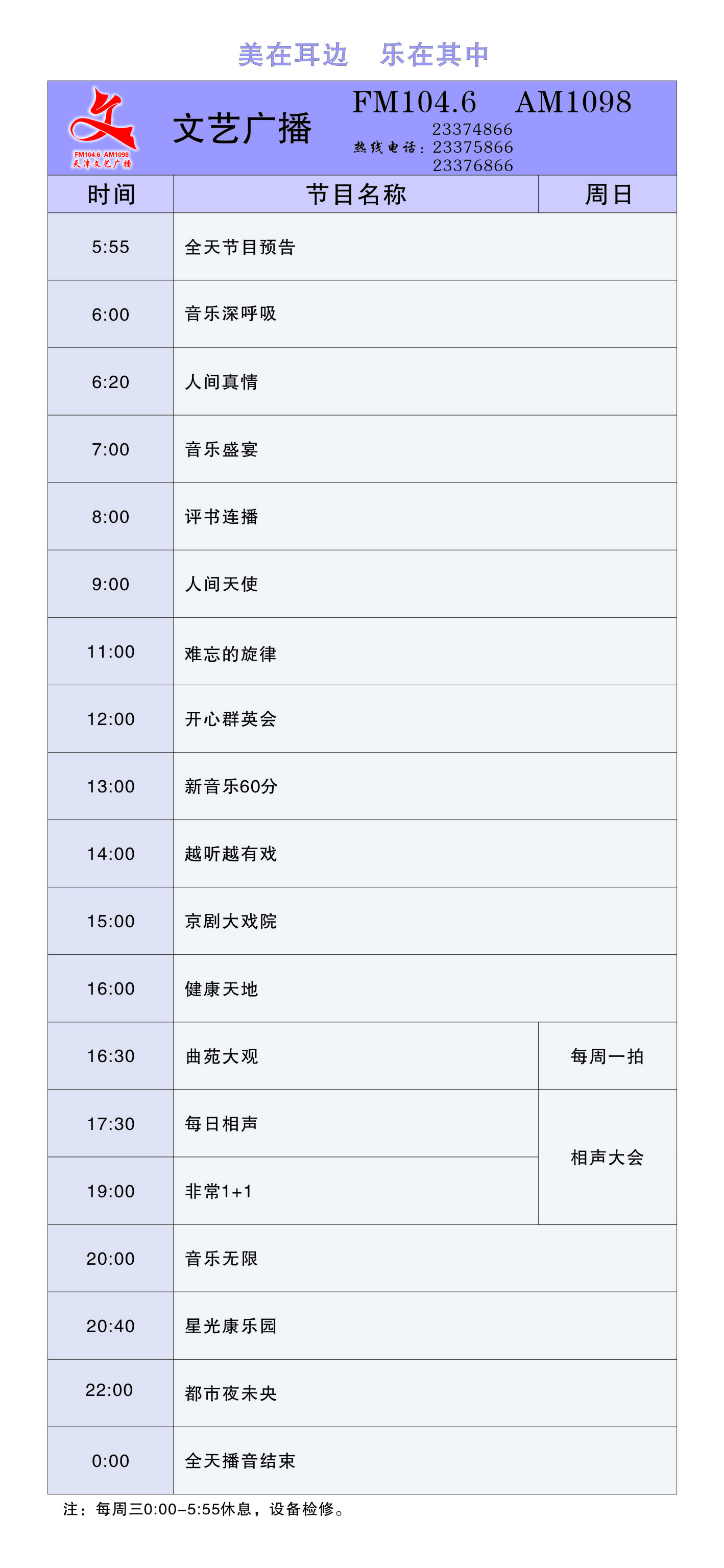 天津電臺音樂(lè )廣播2011年節目時(shí)間表