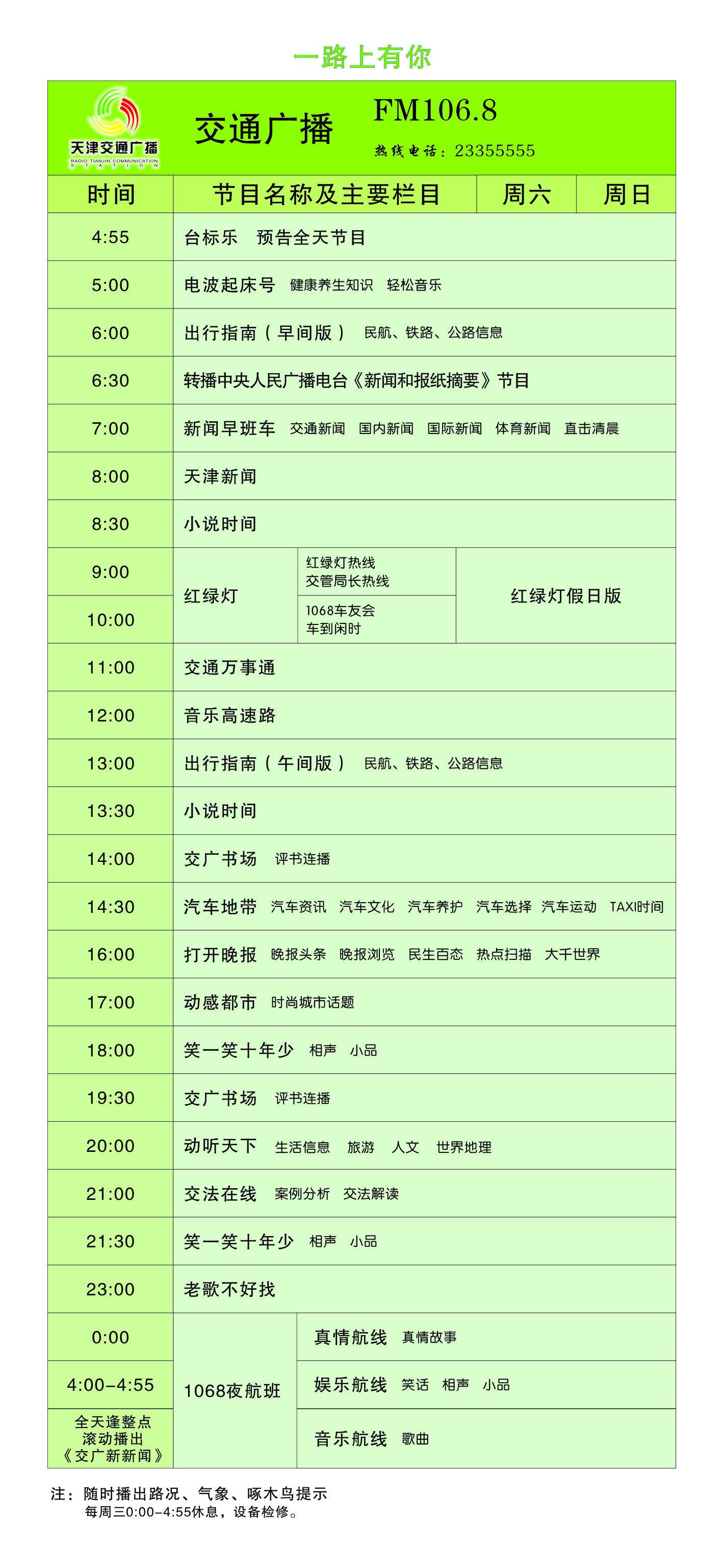 天津電臺交通廣播2011年節目時(shí)間表