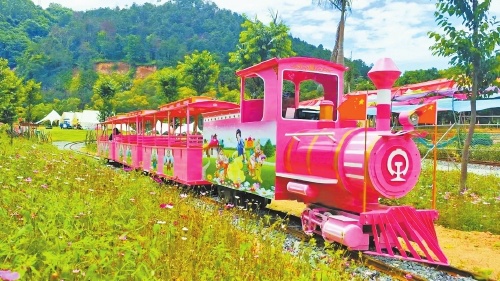 福清市石竹街道洋梓村藏著(zhù)一座花千谷,青山環(huán)抱,綠水相依,以此作幕,精心打造了天湖水上游樂(lè )園、田園牧歌草場(chǎng)、童話(huà)小鎮等一系列體驗項目。