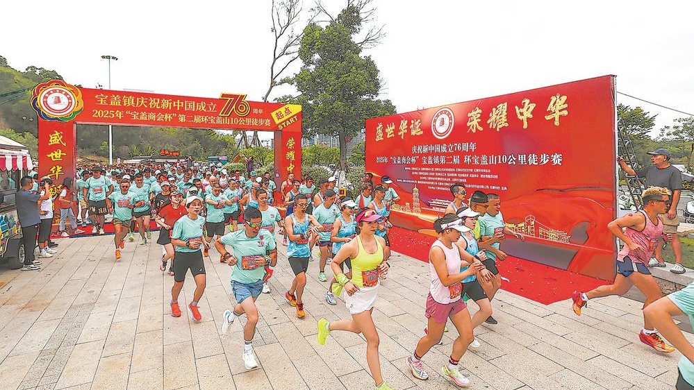26日清晨,石獅市400多名市民齊聚花海谷旅游集散中心,參加慶祝新中國成立76周年暨第二屆環(huán)寶蓋山10公里徒步賽活動(dòng)。