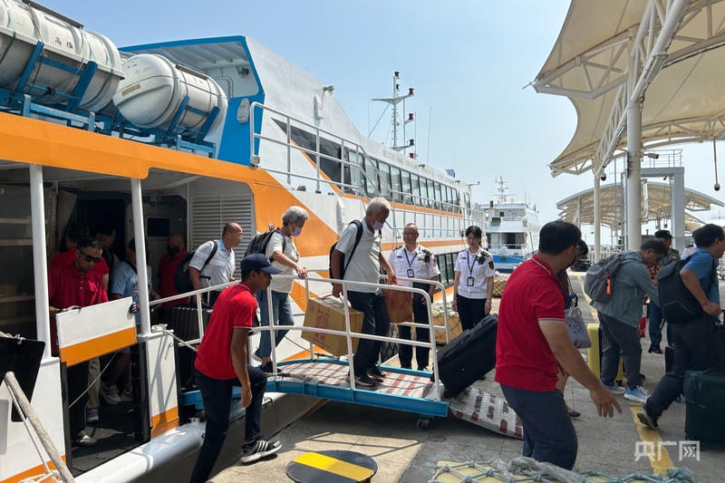 旅客在工作人員的引導下有序下船(央廣網(wǎng)發(fā) 福建海事局供圖)