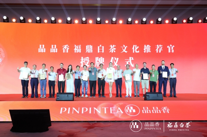 活動(dòng)現場(chǎng)還舉行了“品品香福鼎白茶文化推薦官”授予儀式。9位來(lái)自不同領(lǐng)域、涵蓋中外背景的茶友獲此殊榮——既有深耕茶產(chǎn)業(yè)研究的浙江大學(xué)創(chuàng )新創(chuàng )業(yè)研究院茶產(chǎn)業(yè)創(chuàng )新中心執行主任張心忠、聚焦茶文旅融合的旅行作家雷濤,也有致力于跨文化傳播的烏克蘭籍中國通陳悟空、塞爾維亞籍中醫藥研究者蘇俐娜、法國籍主持人路明等國際友人。