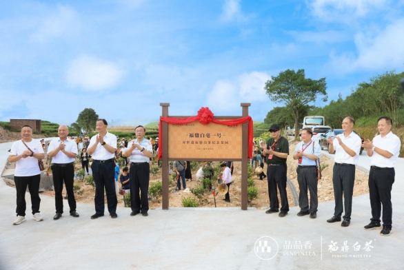 中國茶葉流通協(xié)會(huì )會(huì )長(cháng)王慶、中國出口信用保險公司福建分公司原巡視員,海峽兩岸茶業(yè)交流協(xié)會(huì )副會(huì )長(cháng) 連逸群、福鼎市人大常委會(huì )主任、福鼎市茶產(chǎn)業(yè)發(fā)展領(lǐng)導小組常務(wù)副組長(cháng) 蔡梅生、福建品品香茶業(yè)有限公司董事長(cháng)林振傳共同為這座紀念茶園揭碑,這一雙遺白茶“生態(tài)傳承+技藝展示+文旅體驗”的活態(tài)平臺,未來(lái)將不僅是有機茶種植基地,更會(huì )成為游客感受農遺生態(tài)、體驗非遺制茶的場(chǎng)所,見(jiàn)證雙遺價(jià)值從“紙面”落入“實(shí)踐”。
