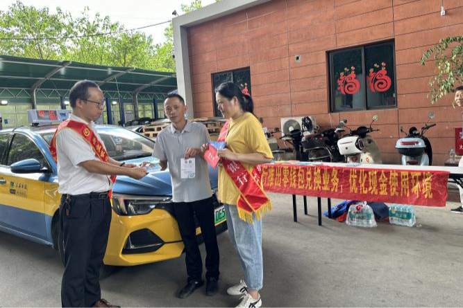 在做好反假貨幣宣傳普及的同時(shí),興業(yè)銀行福州分行還以“優(yōu)化服務(wù)、保障安全、提升效率”為目標,持續開(kāi)展現金支付環(huán)境優(yōu)化工作。聚焦出租車(chē)行業(yè)找零難等問(wèn)題,興業(yè)銀行福州分行組織志愿服務(wù)團隊前往福州海峽交通運營(yíng)有限責任公司、福州市臺江客運聯(lián)合公司、永泰旅游客運站等地開(kāi)展反假貨幣宣傳,同時(shí)為出租車(chē)司機以及周邊商戶(hù)開(kāi)展整治拒收現金宣傳和零錢(qián)包兌換服務(wù)。