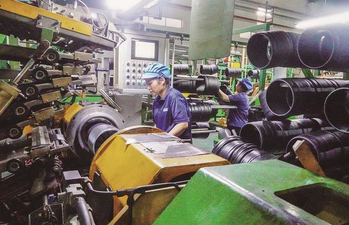 9月27日,在建新橡膠集團旗下企業(yè)——福建和興橡膠有限公司車(chē)間,工人正加緊生產(chǎn)輪胎。這家企業(yè)專(zhuān)注開(kāi)發(fā)中高端摩托車(chē)、電動(dòng)車(chē)、自行車(chē)內外胎。今年上半年,內外胎銷(xiāo)售1490萬(wàn)條,產(chǎn)值約2.2億元。(全媒體記者 吳佳霖 永安記者站 林 丹 攝影報道)