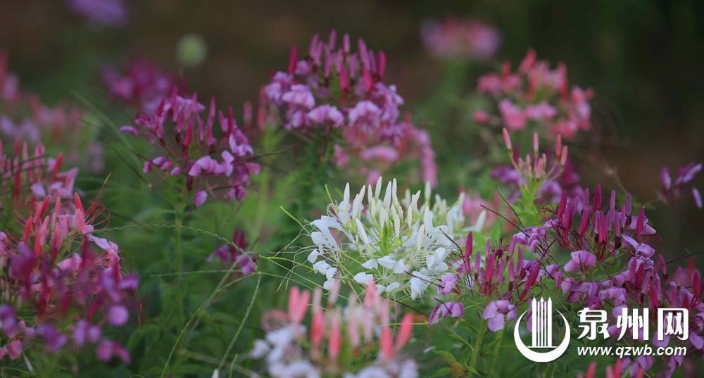 放眼望去,粉的、紫的、白的醉蝶花交織在一起,與遠處的大海和藍天相映成趣,宛如一幅絢麗多彩的油畫(huà)……這是泉州市區濱海公園新一季的花!淼ㄒ讶缙谑⒎,期待您的到來(lái)!