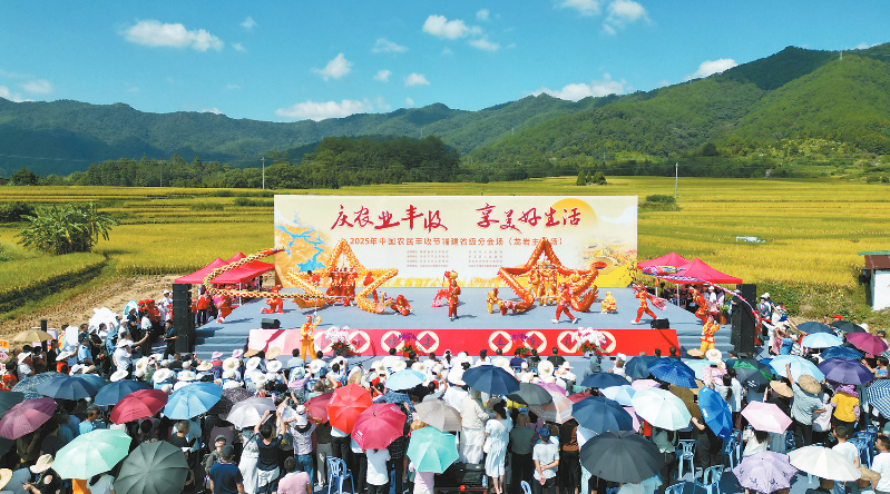 9月28日,2025年中國農民豐收節福建省級分會(huì )場(chǎng)(龍巖主會(huì )場(chǎng))活動(dòng)在永定坎市鎮文秀千畝稻田舉行。福建省農業(yè)農村廳二級巡視員鄭曉梅宣布活動(dòng)開(kāi)幕,龍巖市政府副市長(cháng)邱開(kāi)養致辭。