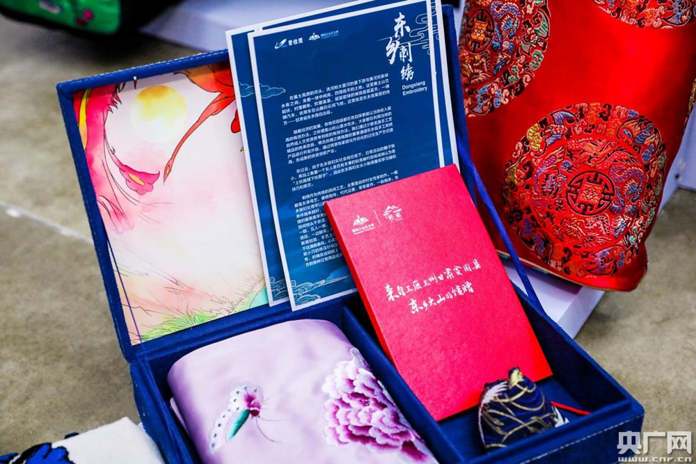 絲質(zhì)順滑的東鄉刺繡絲巾。(央廣網(wǎng)發(fā))