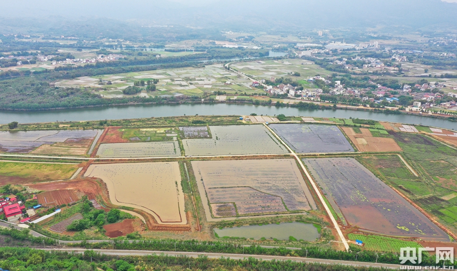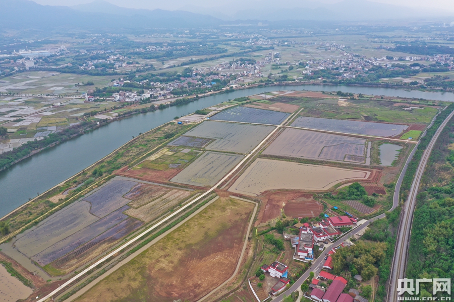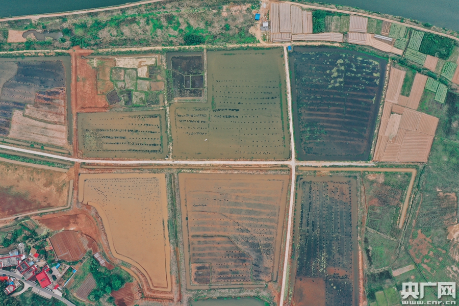 俯瞰數百畝稻蝦田。(央廣網(wǎng)記者 官文清攝)