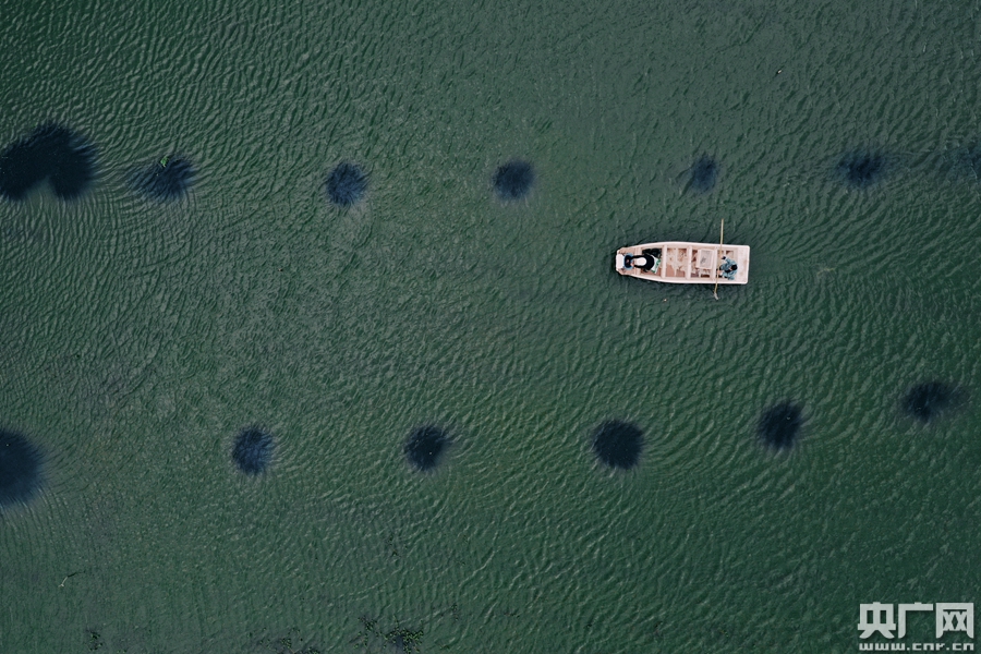 小龍蝦夜間出來(lái)活動(dòng),養殖戶(hù)會(huì )在下午將蝦食投喂完。(央廣網(wǎng)記者 官文清攝)