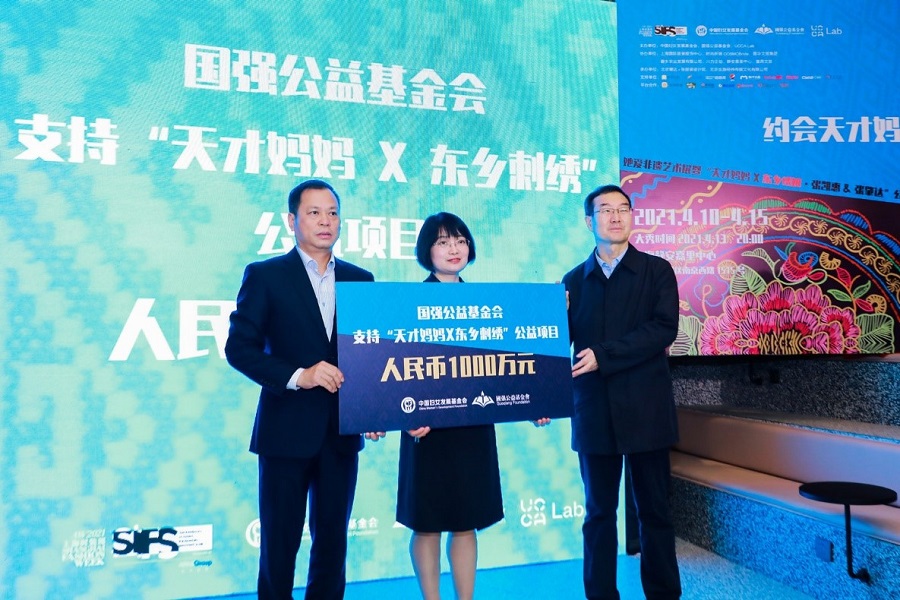 活動(dòng)現場(chǎng),碧桂園通過(guò)國強公益基金向中國婦女發(fā)展基金會(huì )捐贈1000萬(wàn)元,用于支持甘肅省臨夏回族自治州東鄉族自治縣東鄉刺繡項目。