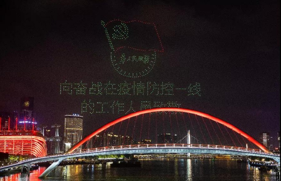 無(wú)人機勾勒出奮戰于一線(xiàn)的防疫人員形象