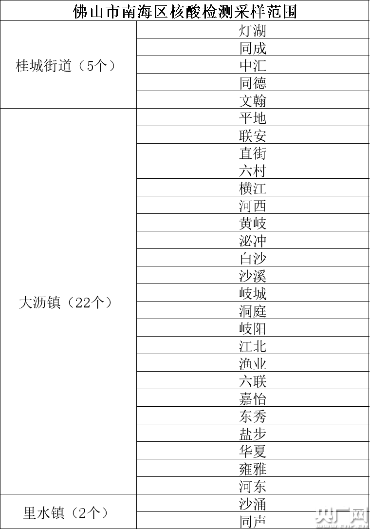 佛山市南海區核酸檢測采樣范圍(央廣網(wǎng)記者 夏燕 制表)