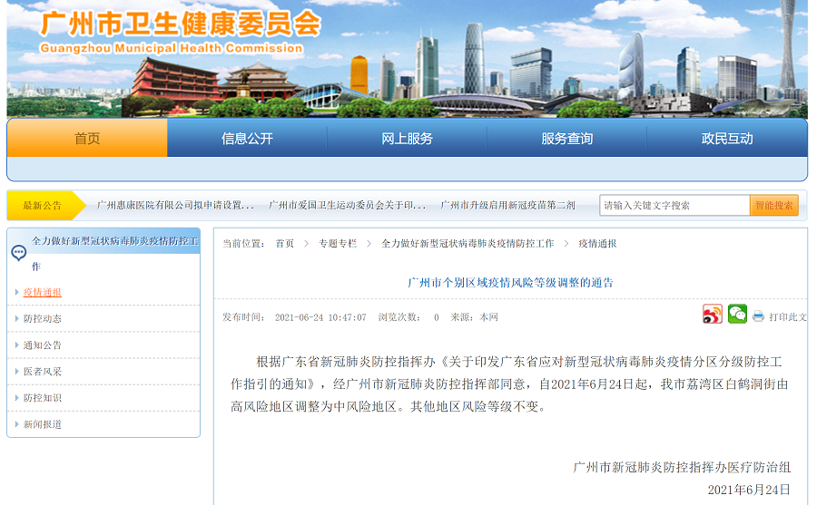廣州荔灣區白鶴洞街降為中風(fēng)險地區