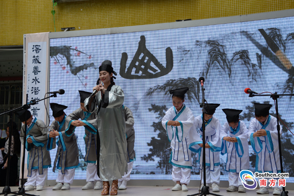 三位校外輔導員給增滘師生帶來(lái)了豐富的文化美餐:梁志成向增滘小學(xué)贈送梁佩蘭的《六瑩堂二集》古籍,還帶來(lái)了自己的木雕作品;陳啟成寄語(yǔ)增滘小學(xué)“增育英才教化群童應有責,滘藏善水潛滋萬(wàn)物乃有聲”;胡琦讓大家欣賞了他的徒弟們精彩的《群口快板》表演。增滘學(xué)子給大家展示了一場(chǎng)糅合了傳承與創(chuàng )新的視聽(tīng)表演。低年部的同學(xué)晃著(zhù)頭,拍著(zhù)手,齊聲朗讀有趣的童謠;中年部以情景劇的形式演繹《小懶蟲(chóng)上學(xué)堂》;高年部師生共同表演《詩(shī)韻童趣樂(lè )悠悠》。