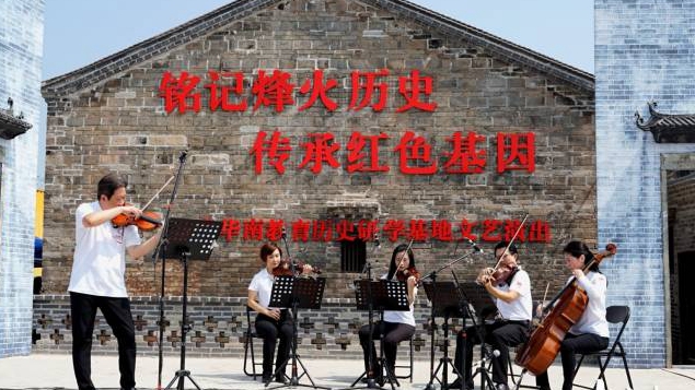 廣州交響樂(lè )團首席、副團長(cháng)張毅與“飛·粵”四重奏在現場(chǎng)演繹獨奏與弦樂(lè )四重奏《第一小提琴協(xié)奏曲》片段。該首曲目由著(zhù)名音樂(lè )家馬思聰1943年作于粵北。