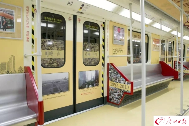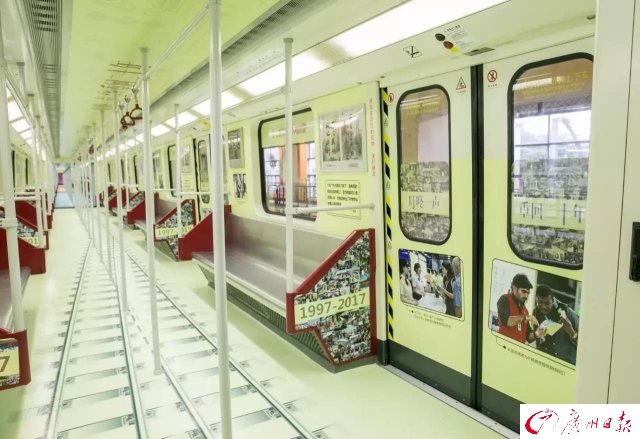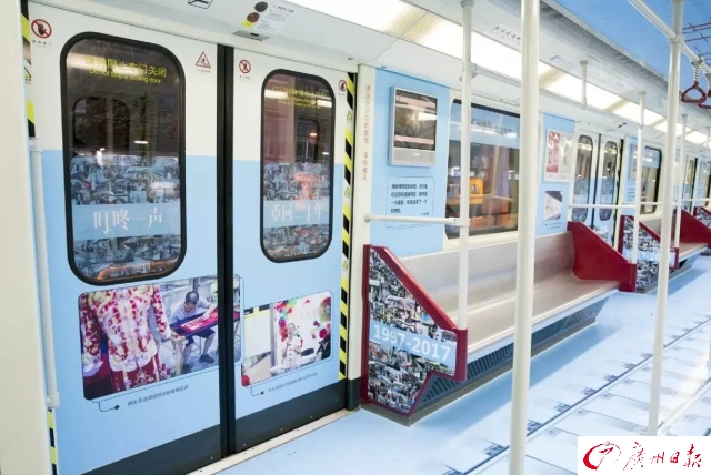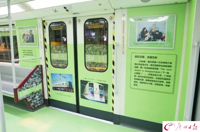 為了慶祝開(kāi)通運營(yíng)20周年,廣州地鐵第一列車(chē)(一號線(xiàn)0102車(chē))變身“回憶專(zhuān)列”,再次上線(xiàn)服務(wù)。1997年4月10日,一號線(xiàn)0102車(chē)從德國運抵廣州黃埔港。20年來(lái),黃色的外表、“叮咚叮咚”的關(guān)門(mén)聲音,都成為市民生活的一部分。
