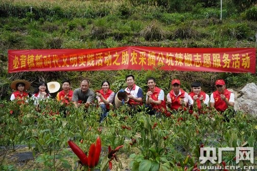 志愿者走進(jìn)大山,幫助農戶(hù)采摘辣椒(央廣網(wǎng)發(fā) 鄧仕華 攝)
