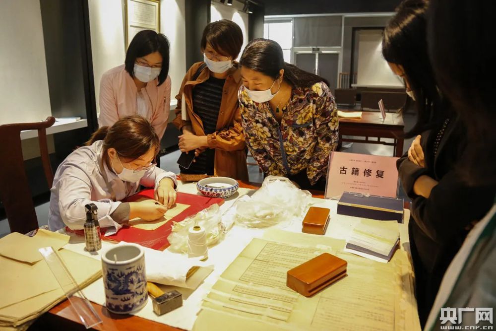古籍修復演示受到了市民的關(guān)注。(央廣網(wǎng)發(fā) 通訊員供圖)