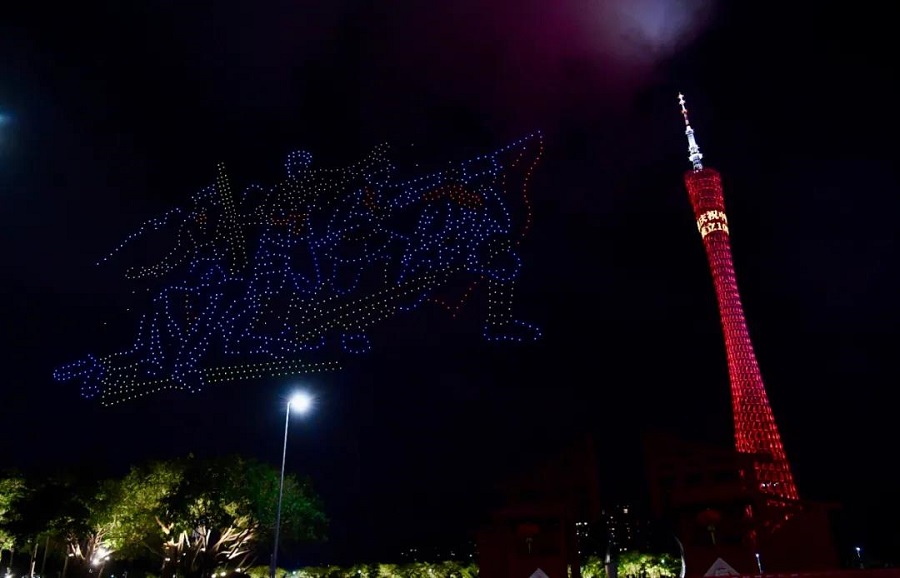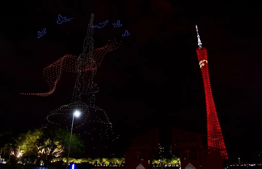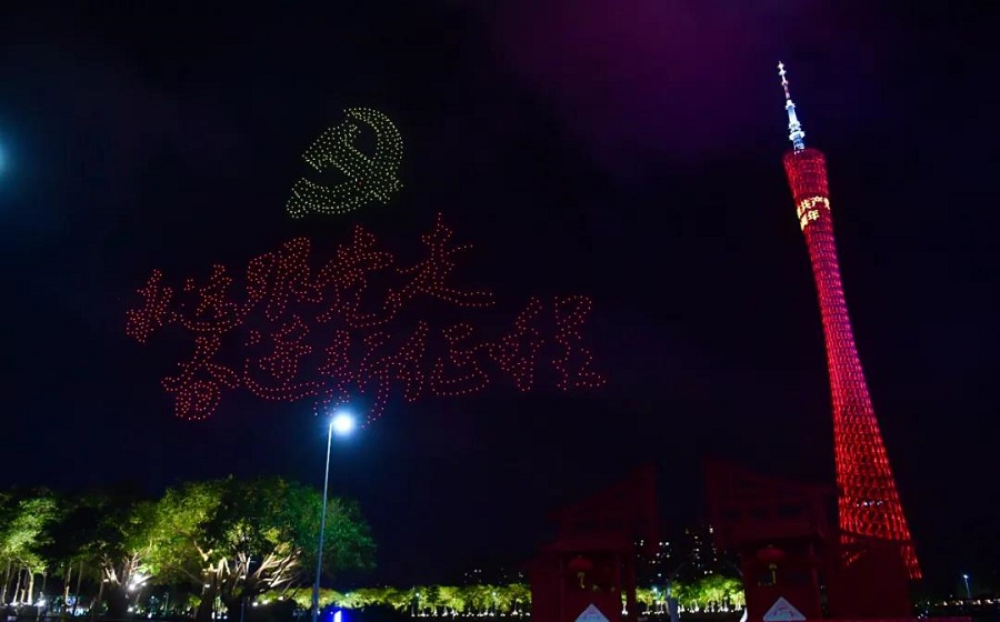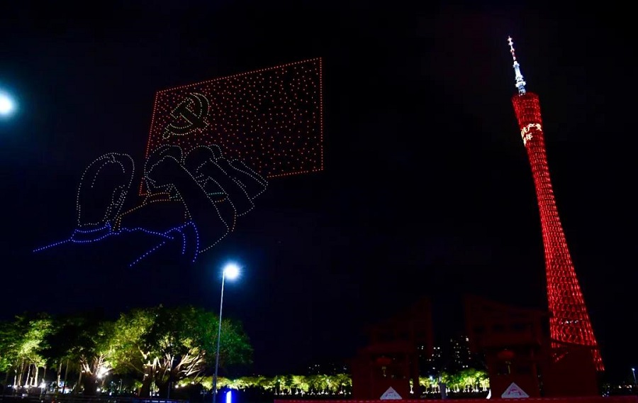 1520架無(wú)人機組成中國共產(chǎn)黨的黨旗,