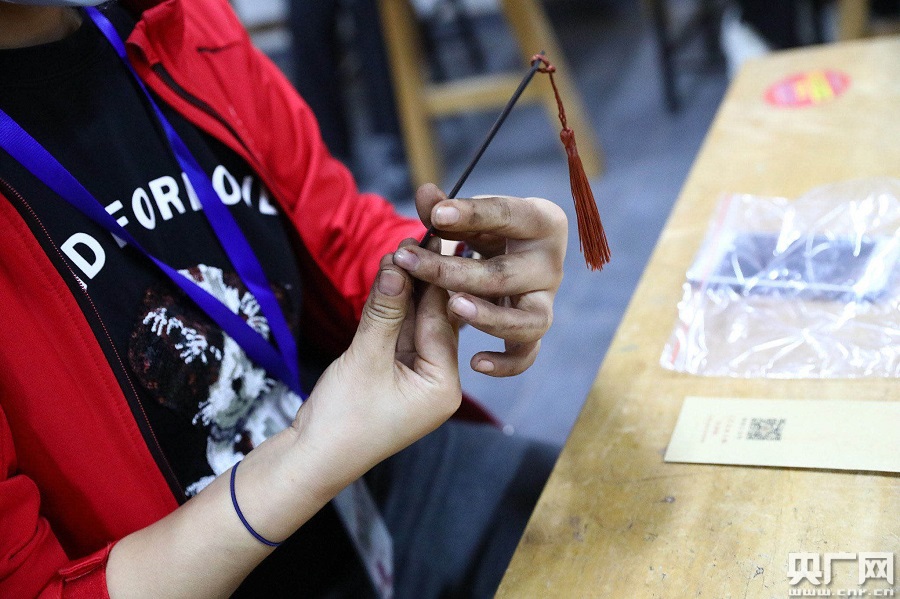 在紅木家居學(xué)院里,國賽選手們親自體驗制作了紅木書(shū)簽!暗谝淮胃惺芗t木制作的過(guò)程,能感受到每個(gè)行業(yè)每個(gè)工種都在很努力地做文化傳承!眮(lái)自吉林的國賽選手張東升說(shuō)。