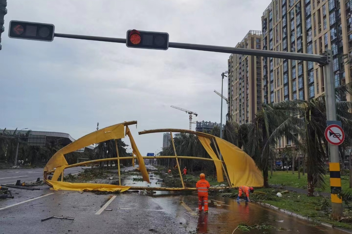 超強臺風(fēng)“摩羯”肆虐后 ?谑醒杆匍_(kāi)展災后重建