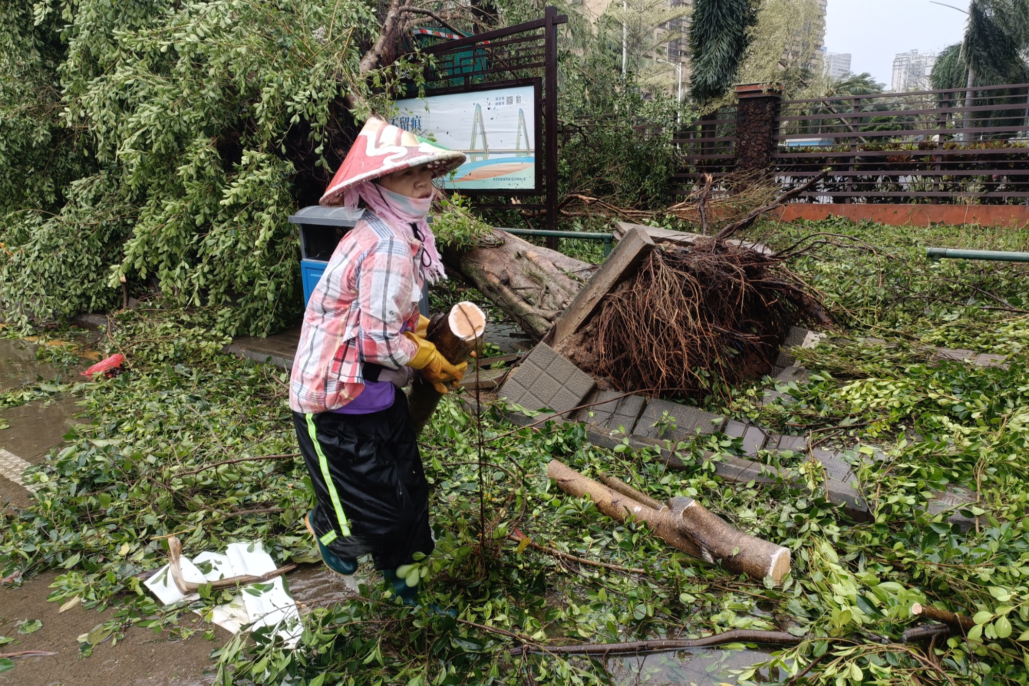臺風(fēng)“摩羯”過(guò)境后,?诮值罎M(mǎn)目瘡痍。