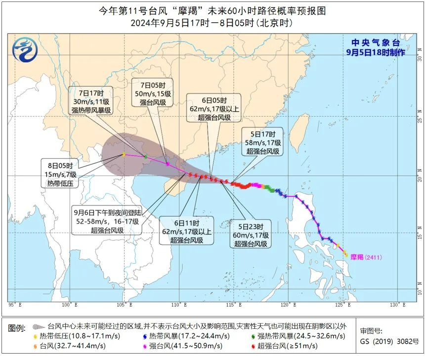 最新!超強臺風(fēng)“摩羯”將于9月6日下午到夜間在海南瓊海到廣東電白登陸
