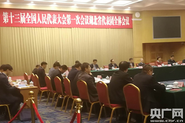 圖為:第十三屆全國人民代表大會(huì )第一次會(huì )議湖北省代表團開(kāi)放日現場(chǎng)