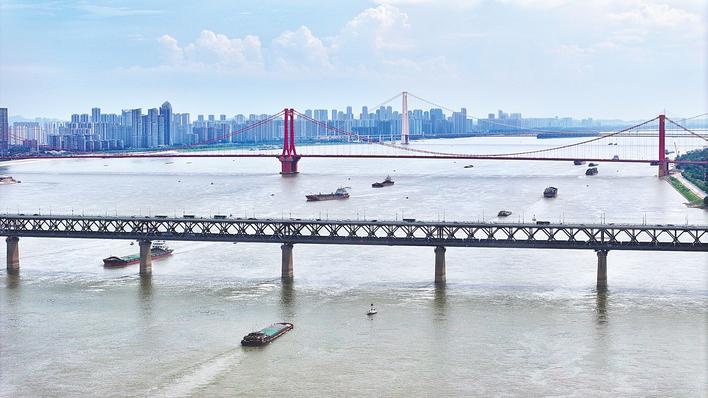 近日,長(cháng)江武漢段迎來(lái)航運高峰。江面貨輪有序通過(guò)多座長(cháng)江大橋,與橋上呼嘯而過(guò)的列車(chē)、川流不息的汽車(chē)交相輝映,構成一幅“水陸并行、多維聯(lián)動(dòng)”的立體交通圖景,彰顯長(cháng)江經(jīng)濟帶的蓬勃活力。(湖北日報全媒記者 陳少哲 攝)