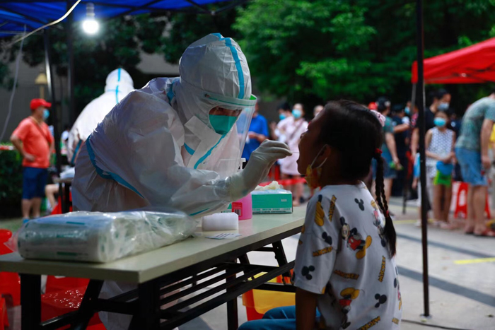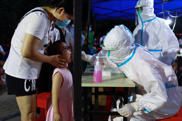 央廣網(wǎng)武漢8月5日消息(記者張卓 通訊員王琛 高琛琛 薛源)3日凌晨至5日,武漢兒童醫院接到馳援采集核酸的通知,成立核酸采樣應急醫療隊,196名醫護人員馬不停蹄分別趕往19個(gè)核酸采樣點(diǎn)。在現場(chǎng),準備物資、備條碼、登記、采樣、維護秩序、整理數據……為提高采樣效率,與時(shí)間賽跑,各個(gè)崗位的工作人員分工明確,有條不紊地開(kāi)展核酸采樣工作。